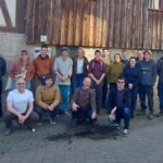 Am 9. März besuchte die Gruppe die Kommune Niederkaufungen bei Kassel. Die rund 80 Bewohner:innen haben sich dort ganz dem Klima- und Umweltschutz verschrieben. Ihr Gemüsekollektiv sorgt mit rund 2,5 Hektar Ackerland und ca. 60 Gemüsekulturen für einen hohen Grad an Selbstversorgung und vermarktet seine Produkte nach den Prinzipien der solidarischen Landwirtschaft. Der Anbau orientiert sich an den Prinzipien des regenerativen und bio-intensiven Anbaus. Fleisch und Düngemittel kommen unter anderem aus der eigenen Tierhaltung mit freilaufenden Schweinen und einer alten Rinderrasse, dem schwarzbunten Niederungsrind.