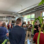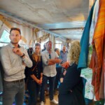 Der zweite Teil der Besichtigung führte zum BENU Village nach Esch: Dieses Ökodorf wurde nach den Regeln der sozial-ökologischen Kreislaufwirtschaft erbaut. Es umfasst eine Schneiderei, die Altkleider zu modischen neuwertigen Kleidungsstücken verwandelt, eine Schreinerei, die alte Möbel restauriert/upcycelt und demnächst auch ein Restaurant, das Nahrungsmittel verwendet, die aus Supermärkten direkt auf dem Kompost oder in einer Biogasanlage gelandet wären („food rescue“). Alle Baumaterialien bestehen aus recycelten und upcycelten Materialien (wie Altcontainer, Fenster, Türen, Dämmung) oder natürlichen und kreislauffähigen Rohstoffen aus der Region wie Lehm und Miscanthus.